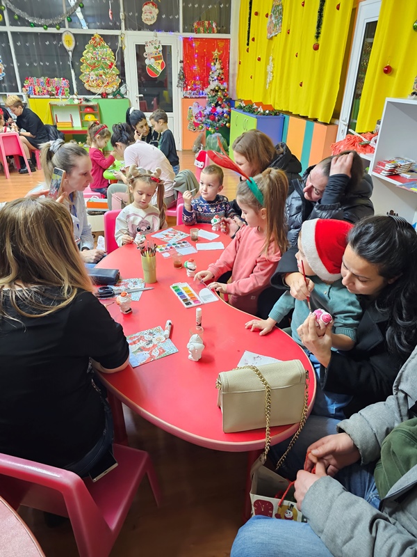 Родители, деца и учители заедно с приповдигнато коледно настроение, изработиха красиви творения. Работилницата започна с емоционална настройка, децата пяха коледни песни, рецитираха стихове и танцуваха за своите родители.