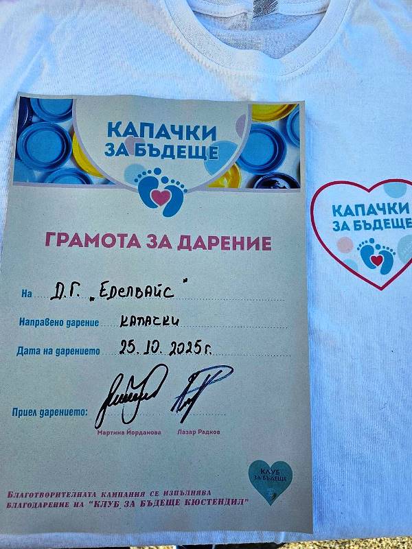За поредна година на 25 октомври 2025 година деца, родители и учители от ДГ "Еделвайс" активно се включиха в кампанията "Капачки за Бъдеще" - Кюстендил, защото приноса на всеки един човек е от значение, за да направим поредното добро дело заедно.