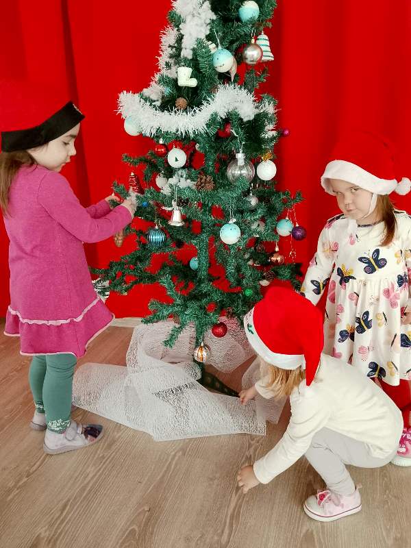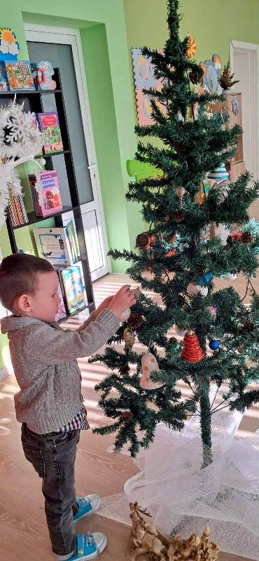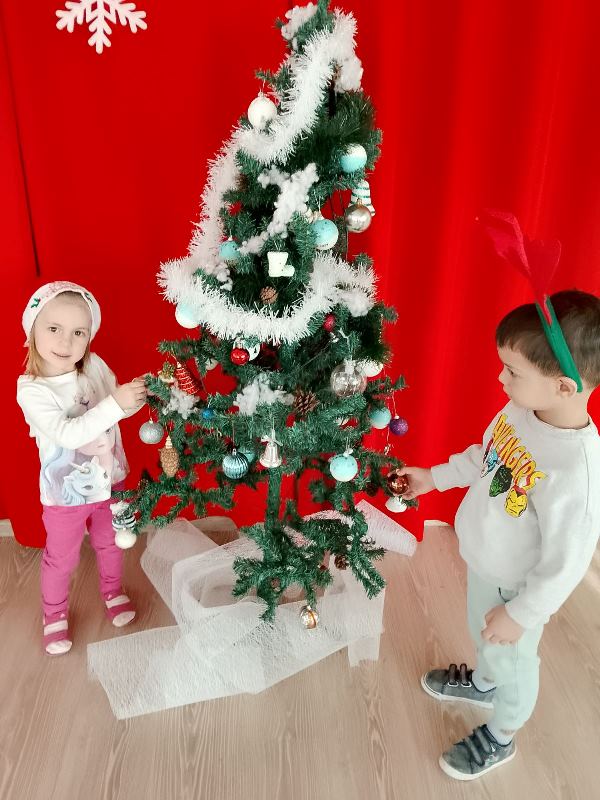 С настъпването на светлите празници Коледа и Нова година, децата от група "Мечо" с много усърдие и искрена радост, украсиха своята елхичка с блестящи гирлянди, цветни украшения и красиви играчки.