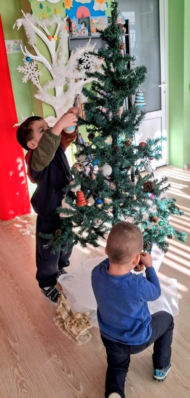 През месец декември 2025 година децата от група " Мечо " изработиха коледна украса, чиято цел бе обогатяване представите на децата за предстоящите празници.