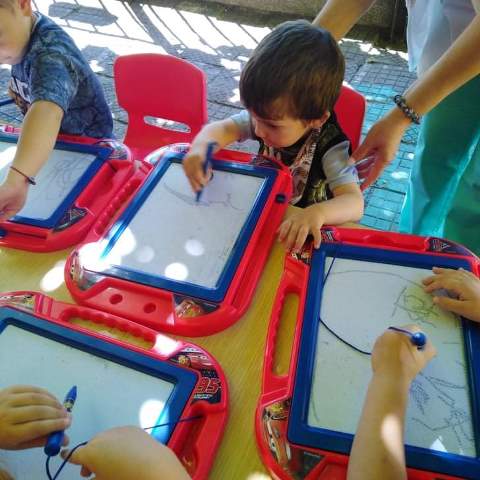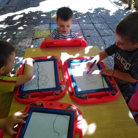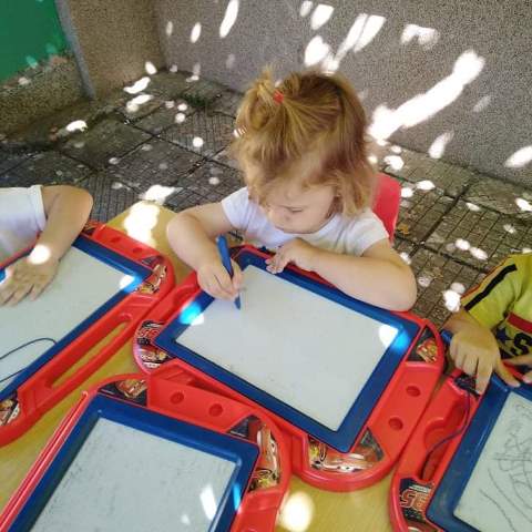 Изобразителното изкуство е желано занимание от малчуганите. Чрез него приучаваме децата към правилно държане на молива, рисуване в границата на листа (дъската), чрез които се усъвършенства фината моторика.
