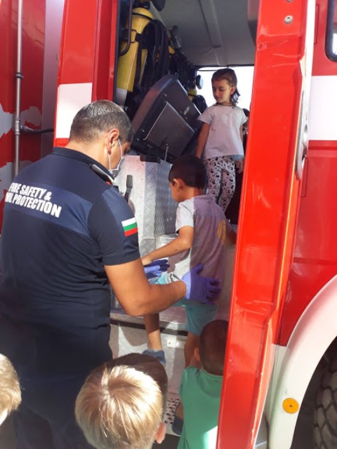 Голяма атракция бе качването в кабината на огромните пожарни автомобили. Децата с интерес разгледаха гаража на пожарните коли, влязоха в ролята на пожарникари и „гасиха“ огън, като пускаха вода от големите маркучи, разбраха колко тежка и отговорна е професията на пожарникарите. Вълнуващо за любопитните малчугани бе и издигането във въздуха чрез огромната пожарникарска стълба в присъствието на служител-пожарникар.