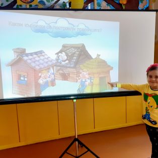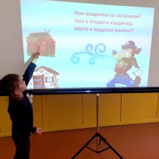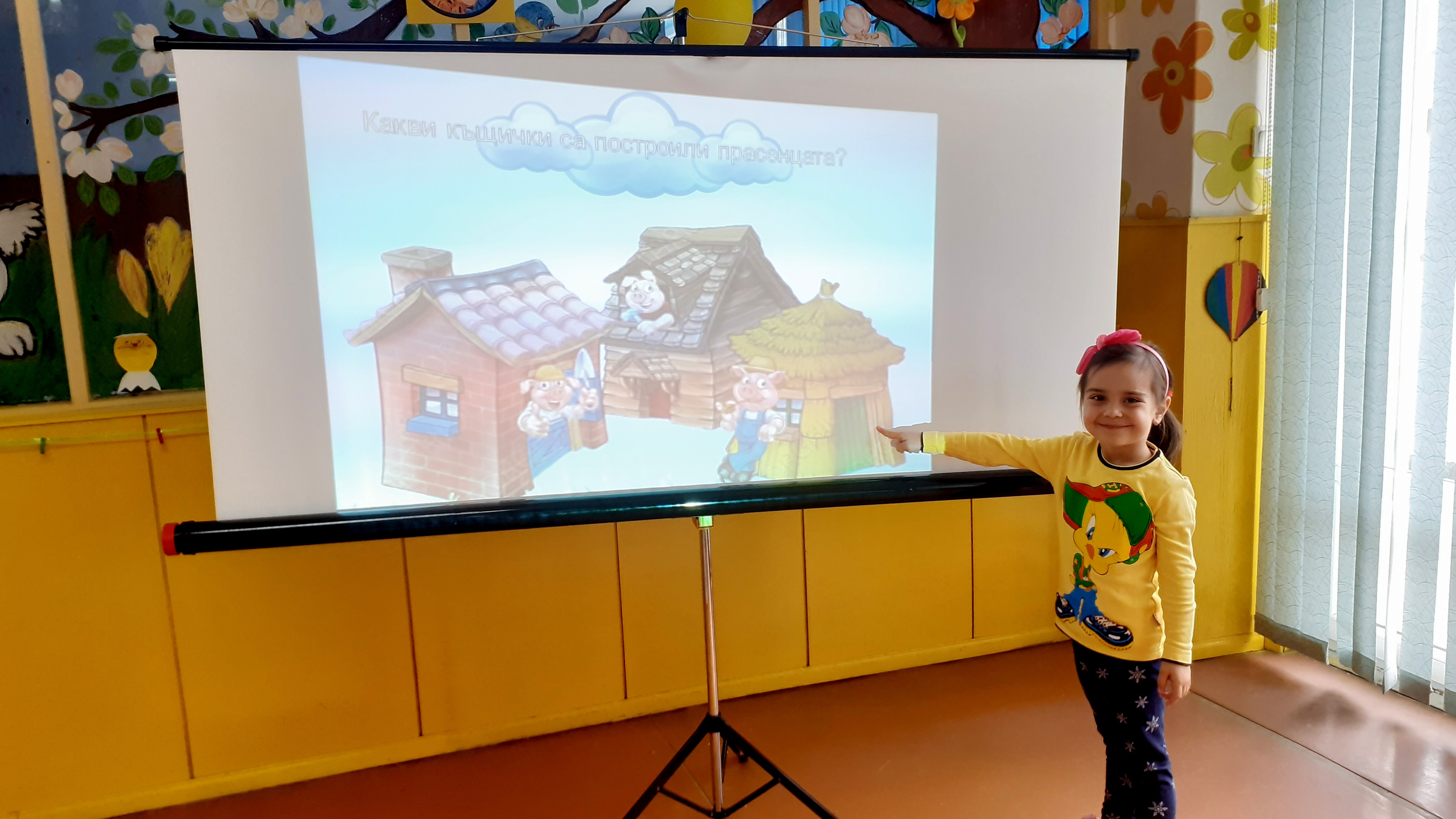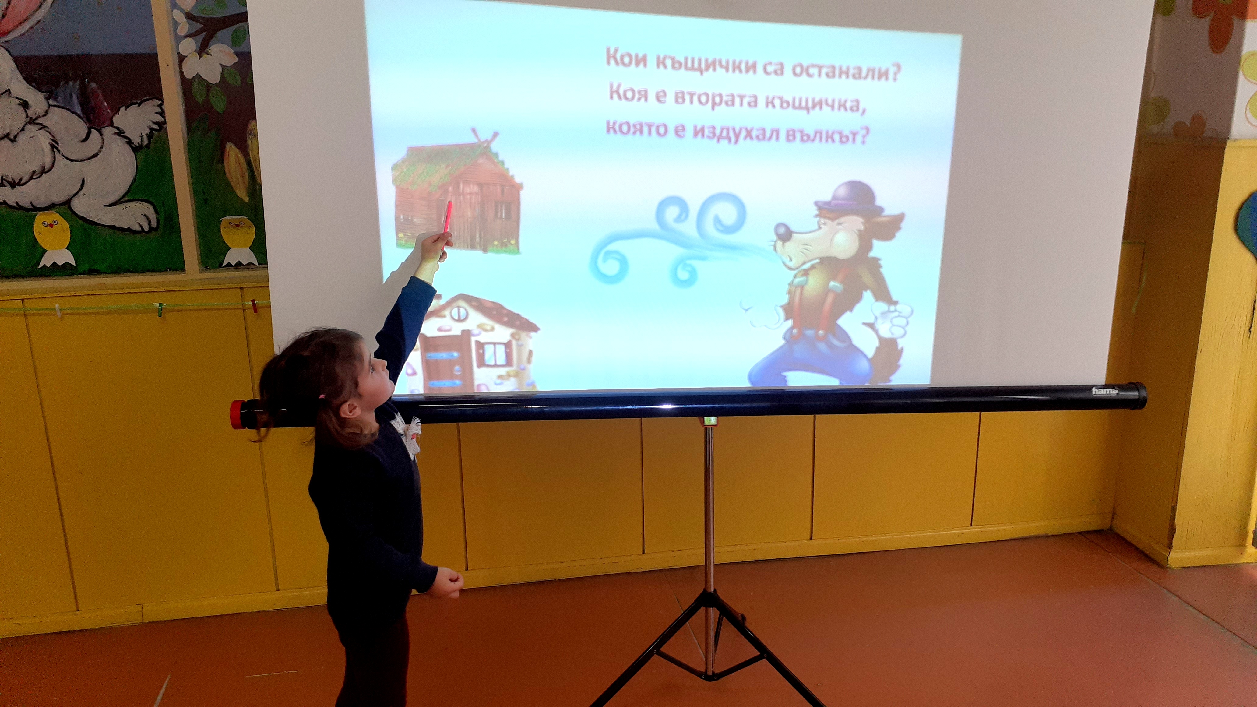 Чрез мултимедийна презентация малките „ежковци” възприеха приказката и така се срещнаха с нови приказни приятели, малко наивни, но много добри.