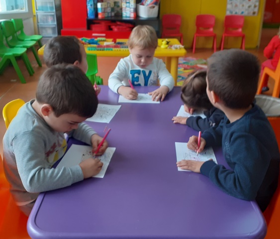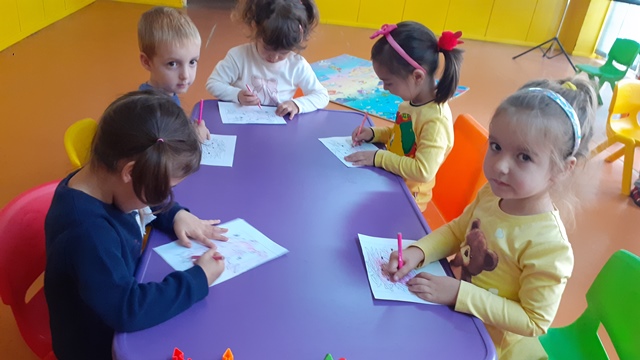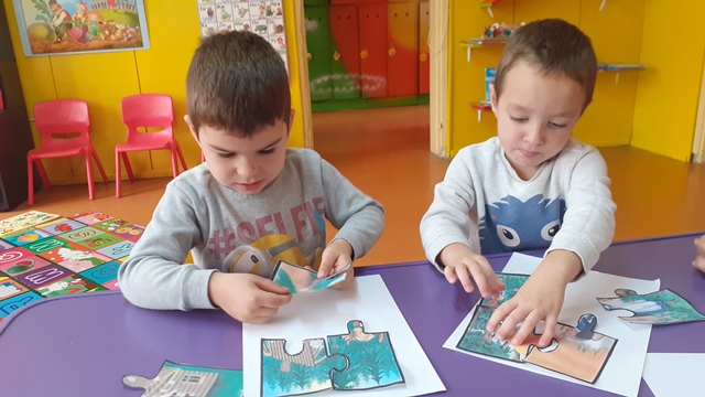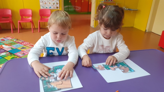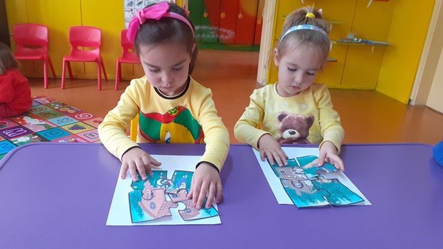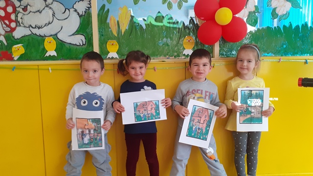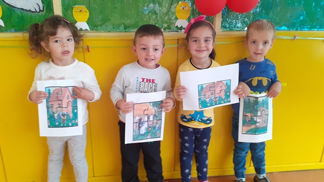 След това децата подредиха пъзели с илюстрации към приказката и оцветиха „трите прасенца”.