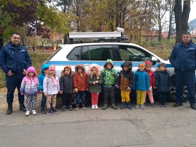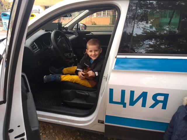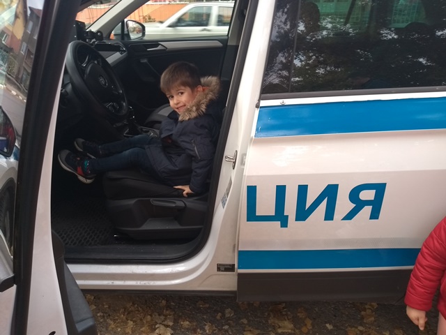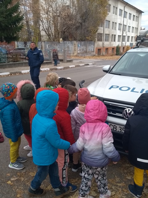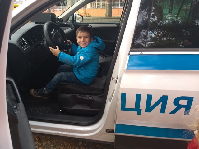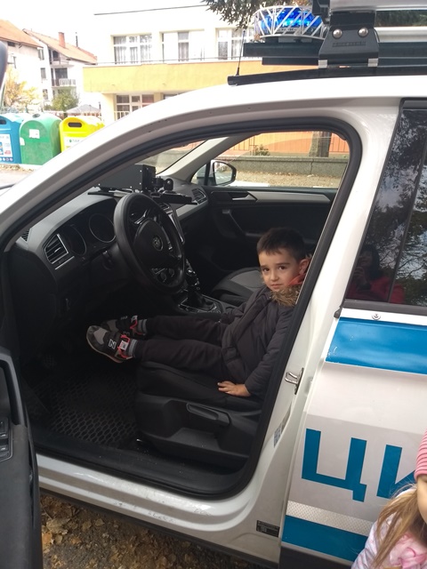 Тримата полицаи разказаха, защо професията им е толкова важна за хората и обществото. Децата се запознаха и с полицейското куче и чуха увлекателни разкази за неговата работа. По нестандартен и интересен начин полицаите разказаха, защо и как са избрали своята професия и дадоха възможност на децата да видят включените светлини на превозното средство и да се качат в него