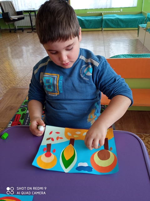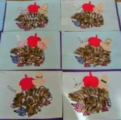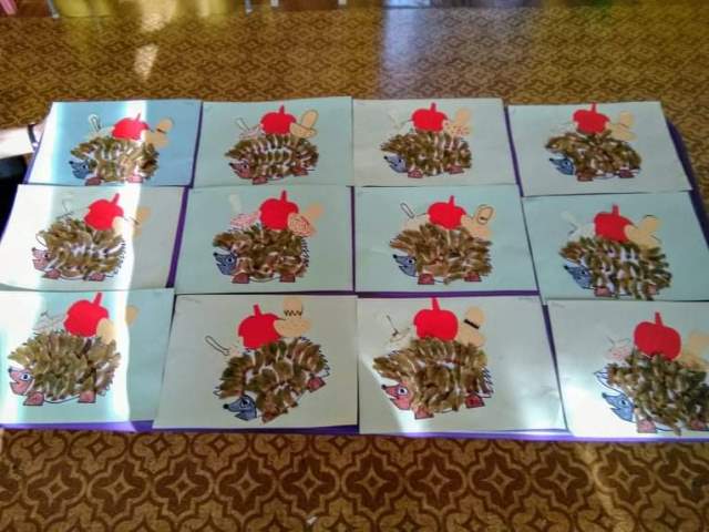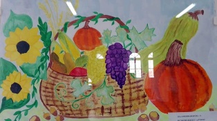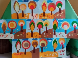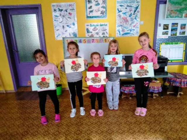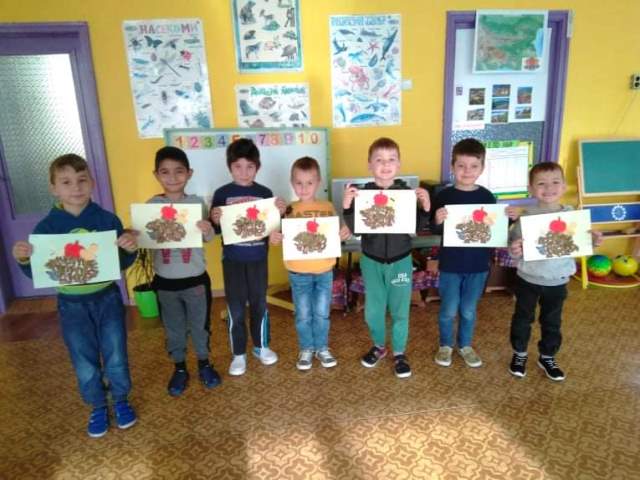 Красивите есенни цветове на есента и нейната щедрост да ни дарява с много плодове и зеленчуци помогнаха на децата да сътворят красиви есенни дървета . Не остана  незабелязано за тях и трудолюбието на горските животни, които с труд и постоянство си събират храна за зимата. Това го показа Ежко Бежко, който бавно, но сигурно си носи на гръбчето вкусни плодове. Ето вижте ги: