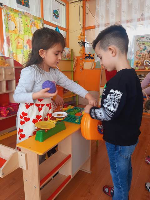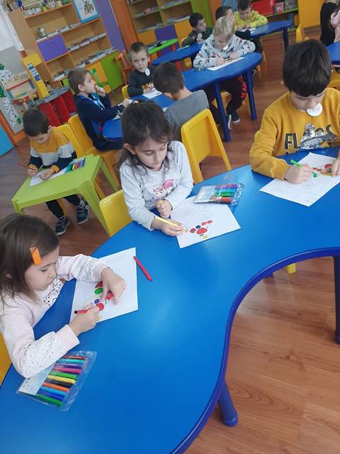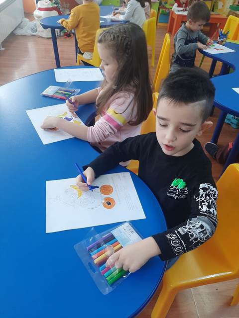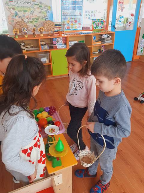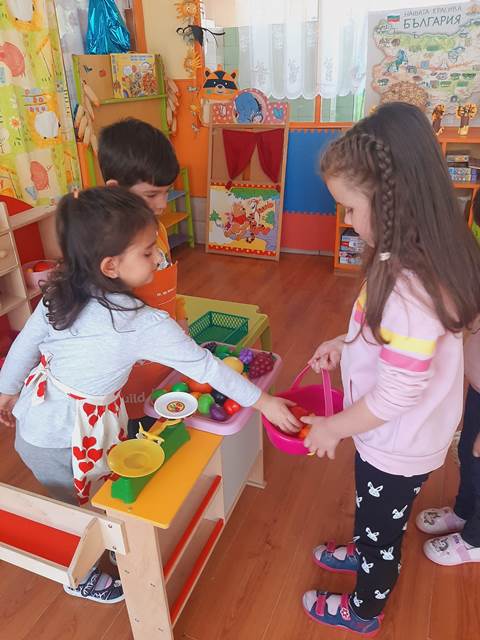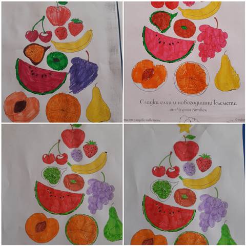 Провокирани от „Приказка за здравословното хранене“, децата оцветиха пъстри картинки на плодове и зеленчуци. След това увлекателно занимание, си организирахме и весели игри, където малките палавници не само се забавляваха, но и разбраха колко важно е да различават вредните от полезните храни, да правят правилен избор на храна, която е здравословна за човешкия организъм.