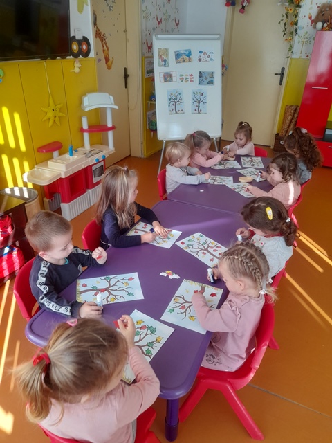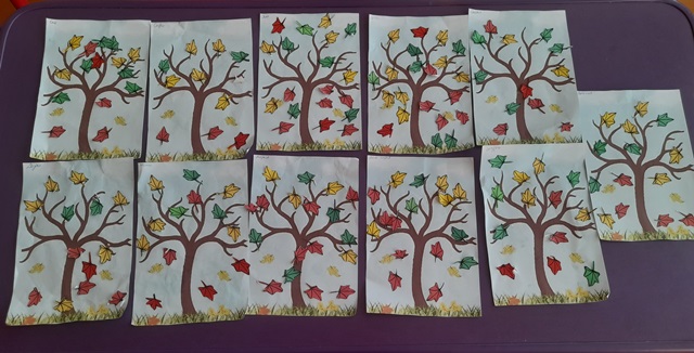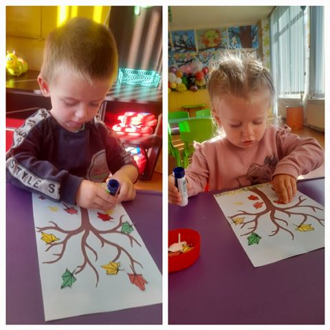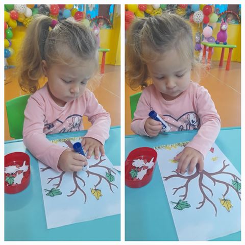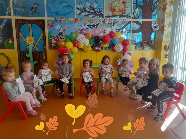 През месец октомври 2022 година децата от група "Ежко" направиха апликация на тема : "Есенни листа". Децата се запознаха с есента, като един от годишните сезони. Те научиха как тя ни дарява с много плодове и зеленчуци и как можем да си  приготвяме за следващия сезон - на студената зима.
