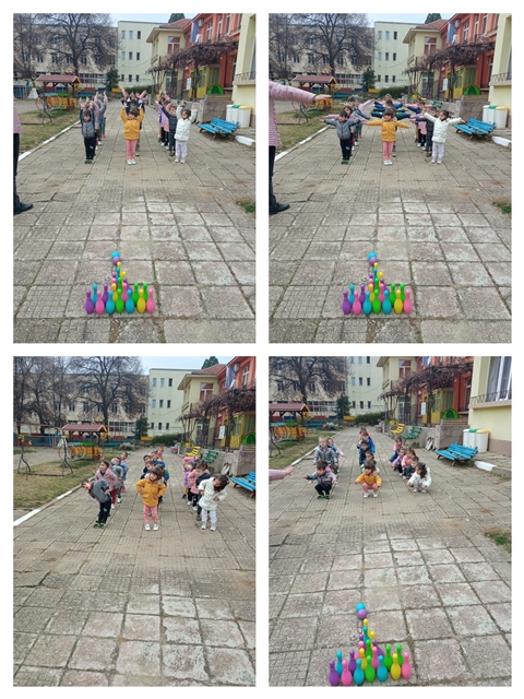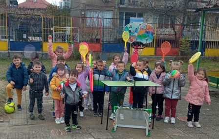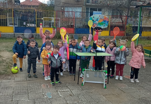По тази причина на 17.11.2022 г. децата от група "Катеричка" играха и се забавляваха със спортни игри на открито - футбол, волейбол, баскетбол, тенис на маса, бадминтон, боулинг.