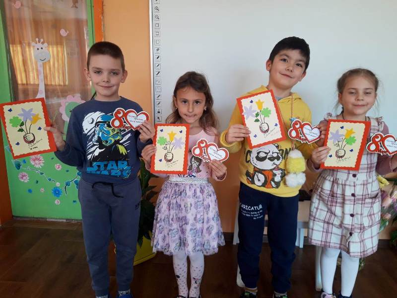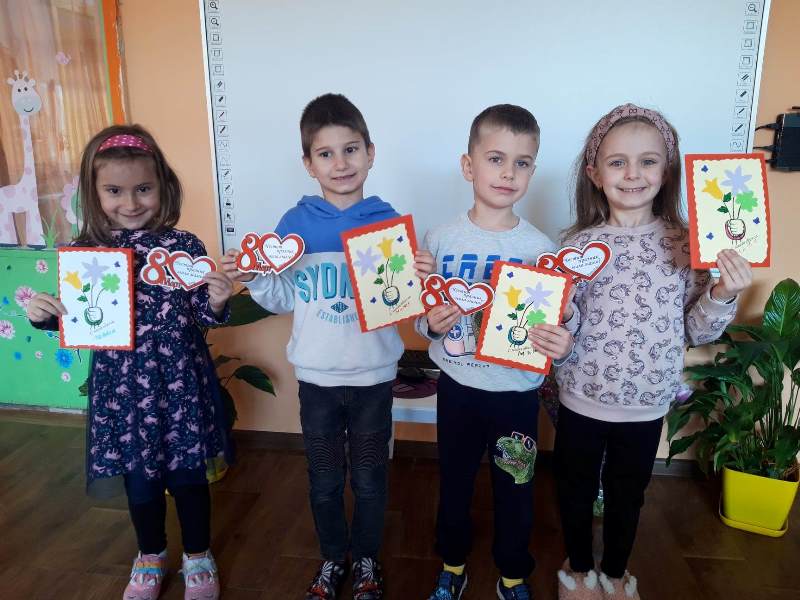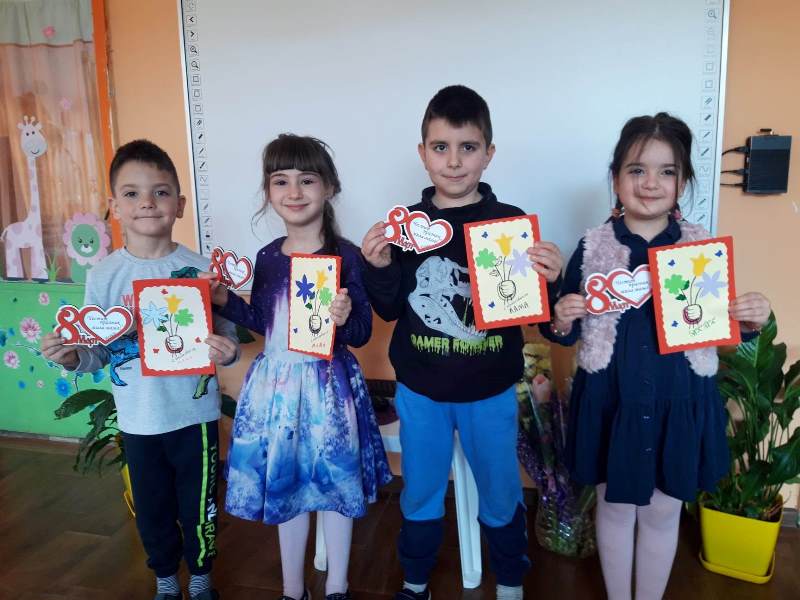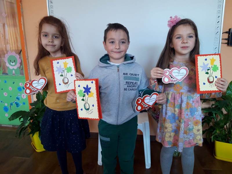 С много ентусиазъм и старание децата от група „Звънче“ подготвиха изненади за своите майки. С много любов работливите ръчички на малките „звънчета“ направиха поздравителни картички. Децата проявиха творчество и талант, за да изработят подарък, с който да зарадват своите майки и да им благодарят за грижите, подкрепата и безграничната любов.