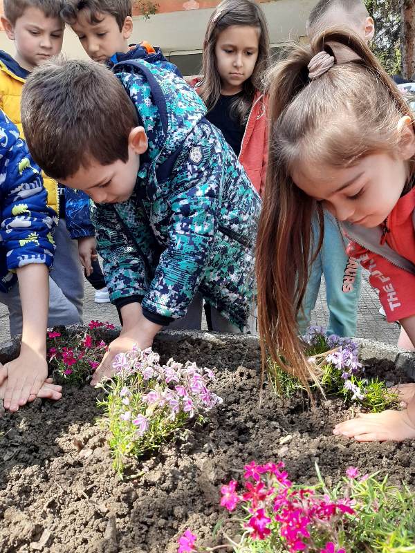 С децата от група „Врабче“ (на 21 април 2023г. ) с различни занимания и прояви отпразнувахме Световния ден на Земята. Припомнихме си колко е важно опазването на околната среда и от нас зависи как ще се чувства нашата мила планета. Посетихме и близкия магазин за цветя, за да си купим подходящи сезонни цветя и да направим по-цветен и красив двора на детската ни градина.