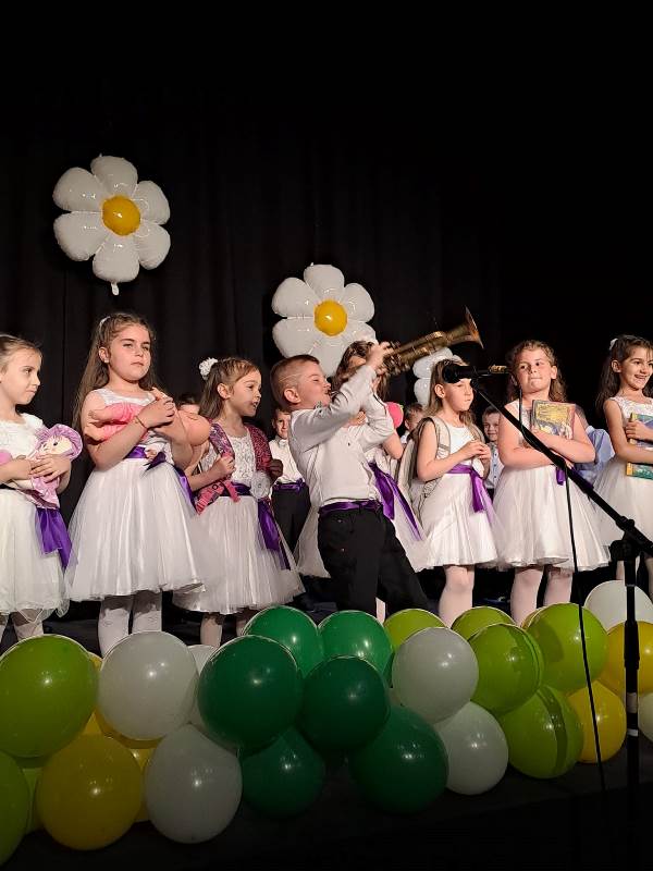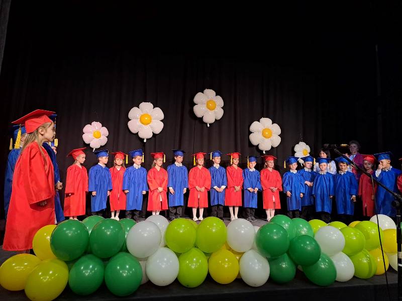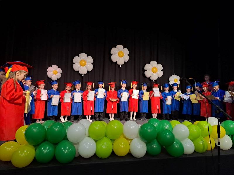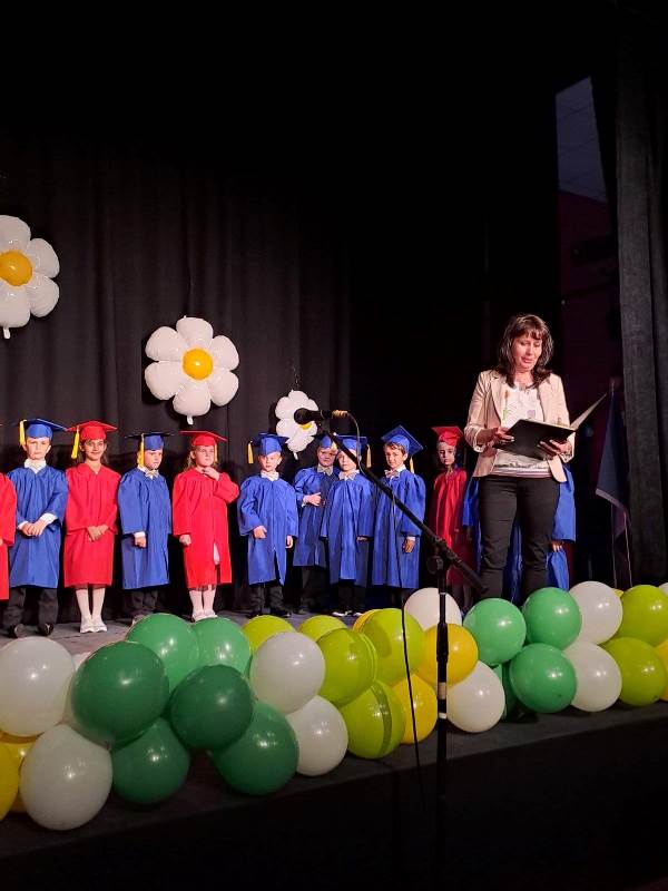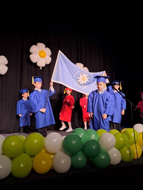 С тържествена програма на 25 май 2023г. бъдещите първокласници от група „Врабче“ отбелязаха своето завършване на детската градина. Звънливите детски гласчета огласиха малката зала на Драматичния театър. С огромно вълнение създадоха пред своите родители и гости неповторима емоционална атмосфера с много песни, танци и игри.