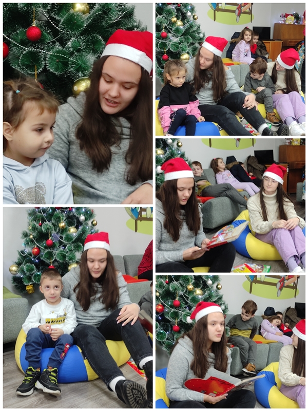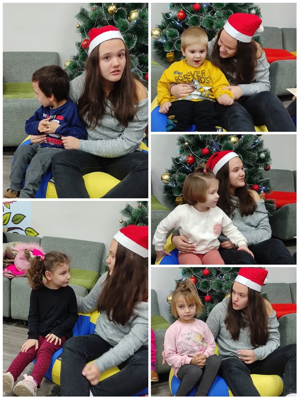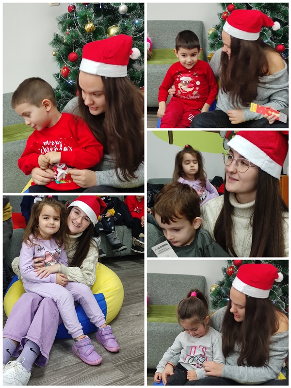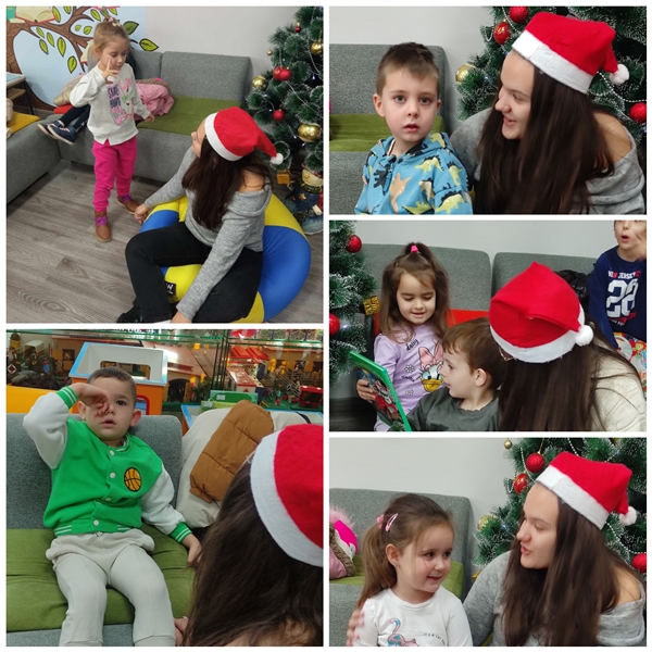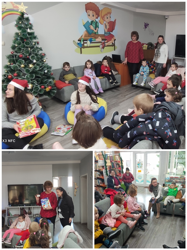 Малчуганите се запознаха с "елфите" на Дядо Коледа, които ги потопиха в приказния свят на Коледа. Те им прочетоха вълшебни приказки. Малките "Катеричките" с голямо интерес ги слушаха, а след това с ентусиазъм ги преразказваха. На групата беше подарена читателска карта и взехме първите книжки, които да прочетем заедно в детската градина. Също така получихме и стикери за всяко дете, както и книгоразделител за книжките ни.