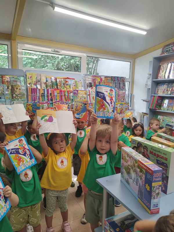 Сред шарени корици, усмивки и пъстри истории, малките откриватели разгледаха интересни издания и се запознаха отблизо с вълшебната атмосфера на книжарницата. Голямата изненада дойде от госпожа А. Тодорова, която зарадва всяко дете с подарък – книжка и вкусни бонбони. Жестът ѝ създаде още по-сърдечно и запомнящо се преживяване за малчуганите.