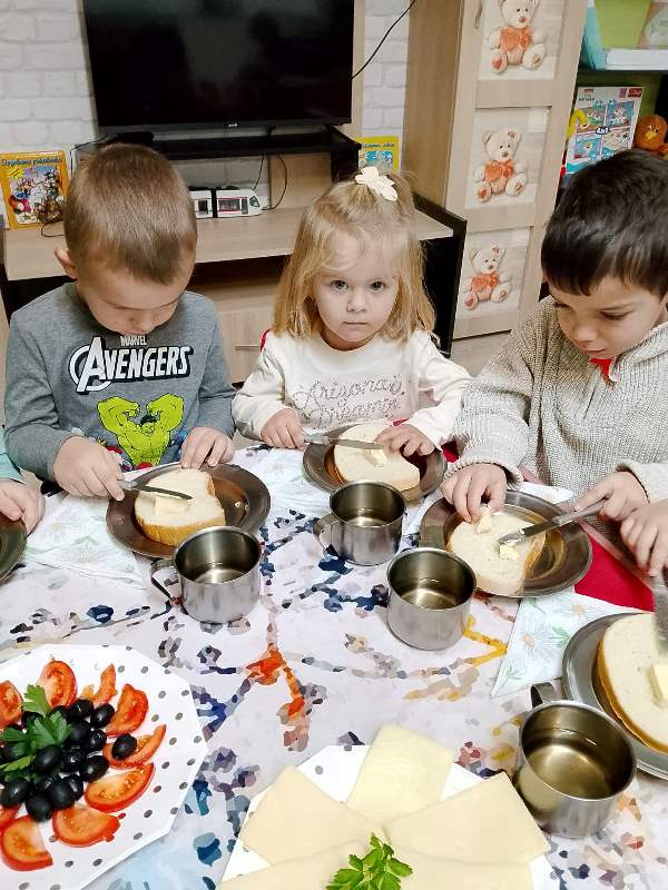 Формирането на умения за водене на здравословен начин на живот още от ранна детска възраст е един от основните приоритети в работата на ДГ "Еделвайс". Ето защо, в днешния ден, нашите прекрасни деца сами приготвиха своята здравословна, вкусна и красиво аранжирана закуска. Децата старателно украсиха с кашкавал, чушка, доматки, краставичка, маслинки и дрруги полезни продукти своите вкусни и полезни сандвичи.