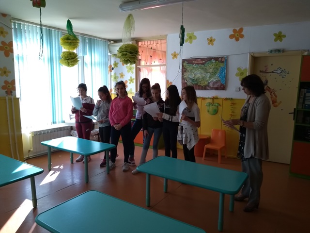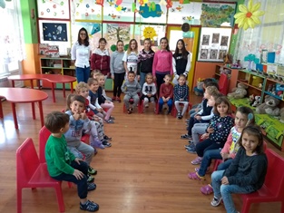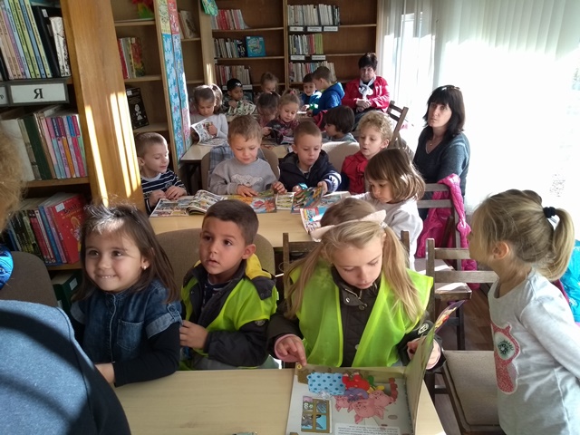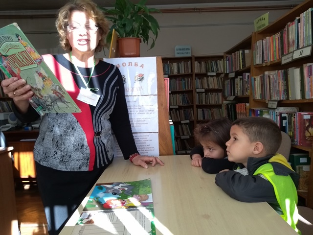 На 22.10.2018 г. за да насърчим децата да споделят любовта си към четенето със свои близки, бяхме поканили бабата на Борис Аксентиев. Така в четене и разкази премина инициативата "С баба приказки разказвам". На 23.10.2018 г. на гости в нашата детска градина бяха ученици от шести клас на Първо основно училище "Св. св. Кирил и Методий" с класен ръководител г-жа Ерина Чамова. Посрещнаха ги малчуганите от гр. "Зайче" и заедно гостувахме на малките дечица от гр. "Ежко". "Ученици четат на деца"-под този надслов премина четенето на приказката в стихотворна форма "Задружните животни". И приказки от новият библиотечен кът прочетоха учениците на децата ни, а от своя страна Виктория Василева им преразказа приказката "Дядо вади ряпа", Калоян пък изрецитира стихотворението "Есента богата".