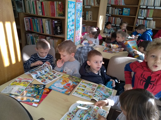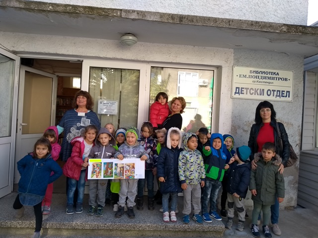 Децата с нетърпение дочакаха 26.10.2018 г., когато посетиха детския отдел на библиотеката "Емануил Попдимитров" гр. Кюстендил и книжарница "Хеликон". Служителите в библиотеката ги посрещнаха със специално отношение, прочетоха им приказката "Червената шапчица" след което заедно с децата наредиха колаж от илюстрации на чутата приказка. След посещението в книжарницата децата си тръгнаха с новозакупена книжка със стихотворения за библиотечния кът в групата. И ще завърша краткото представяне на събитията през седмицата с любими цитати от детски книжки. "Татенце, как мислиш, дали е възможно да ми купиш книги'- от Роалд Дал. "Реката от думи прави книгите, а книгите са богатство"- от Доналд Бисет.