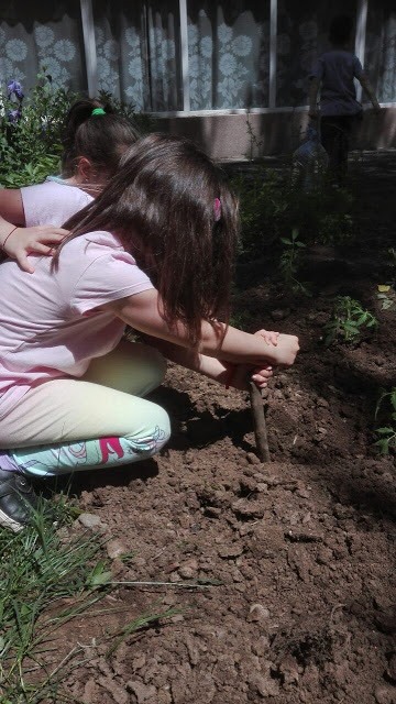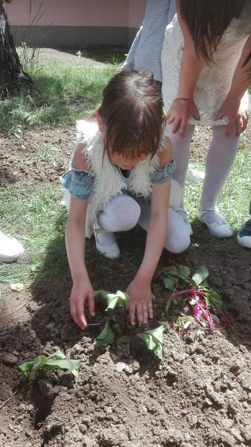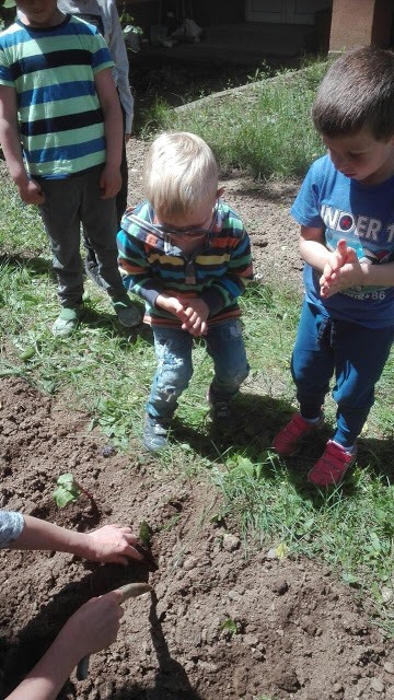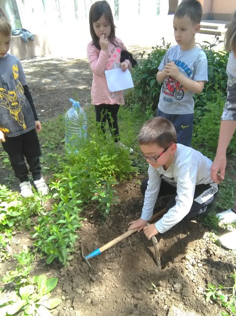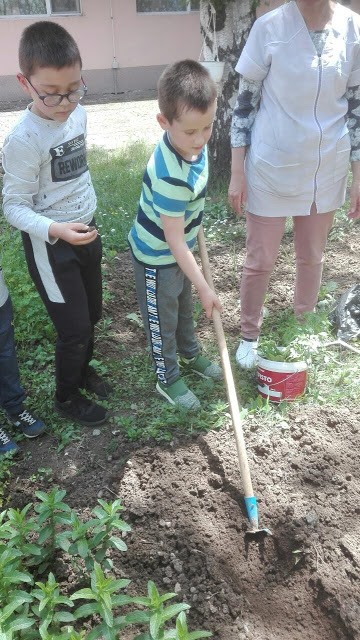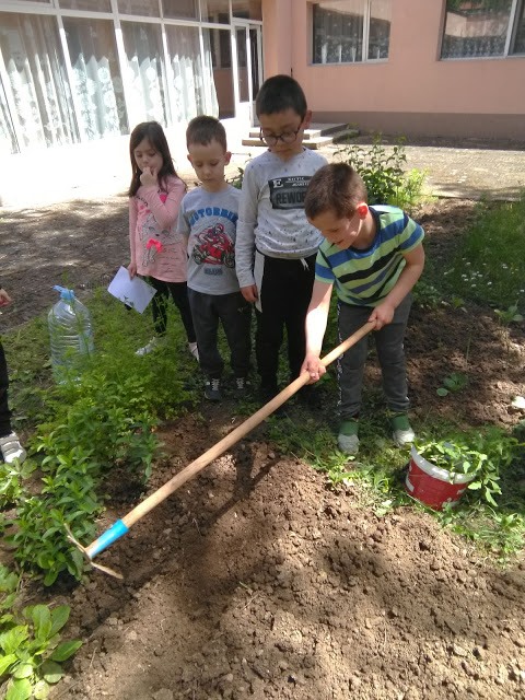 През месец май 2019 година с децата най-напред обсъдихме какви зеленчуци ще посадим и как ще се грижим за тях. След това, заедно с леля Гори, малките градинари почистиха и прекопаха лехичката, направиха редчета и засадиха домати, чушки, цвекло и подправки.