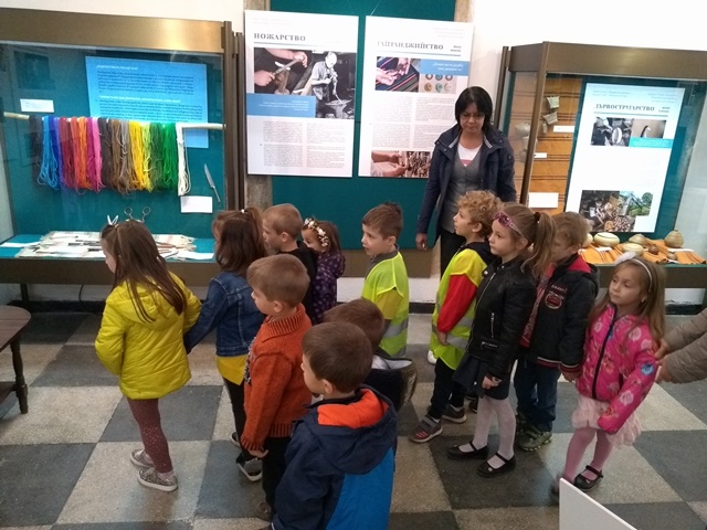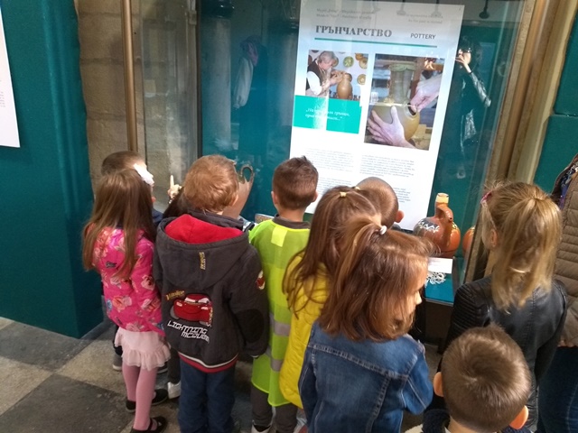 С нетърпение и голям интерес разгледахме гостуващата изложба "Мозайка от занаяти" на "Етър" в изложбената зала на джамия Ахмед бей. Децата се захласнаха от традиционните занаяти, характерни за Централна Стара планина. Сред богатата палитра от занаятчийски изделия изпъкваха: медните съдове, златарството, ковачеството, кожарството, памукчийството и др. Запознаването със занаятите продължи и с презентация на филми по темата. Уредничката Мария впечатли децата с разкази и обиколка на триетажната Пиргова кула. Те вече знаят историята на Средновековната отбранителна кула в гр. Кюстендил.