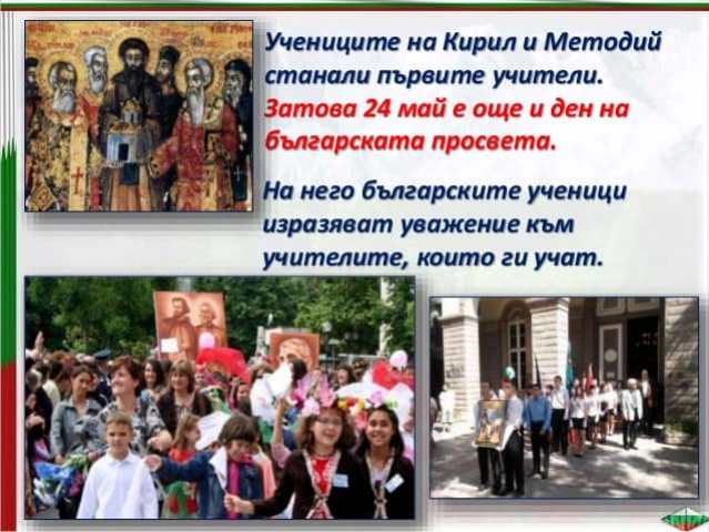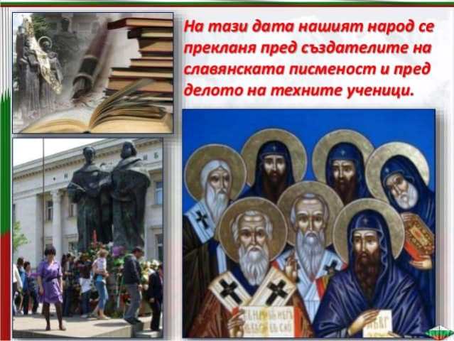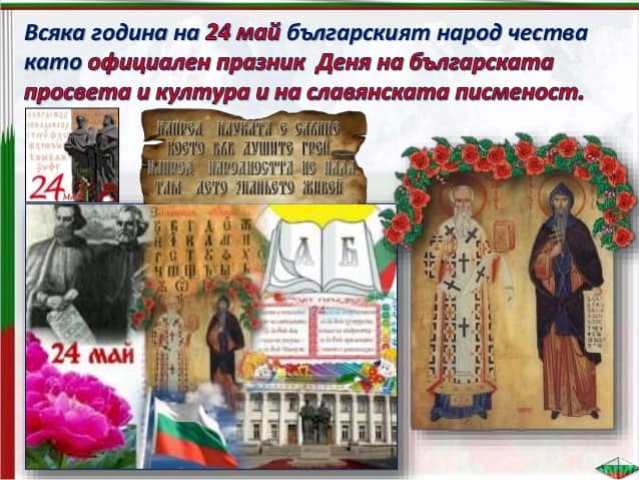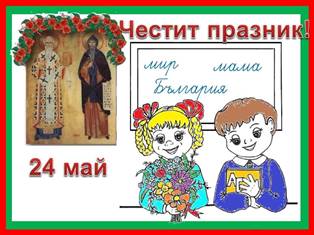Written on 24 Май 2020. Posted in Празници и традиции. 24 май - Ден на българската просвета и култура и на славянската писменост Днес е 24 май! Един от най-чистите,най-светлите,най-святитепразнициза нашия народ... Наричаме ги просветители Мили деца, уважаеми учители, Честит Празник! Created on 24 Май 2020.
