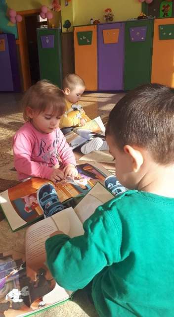 Със съдействието на представители на Регионална библиотека "Ем. Поп. Димитров", град Кюстендил.те навлязоха в приказния свят и с интерес слушаха любими приказки, четени от техните възпитатели Разглеждаха книжки и още от най- ранна възраст се обучават и възпитават в любов и уважение към книгата!