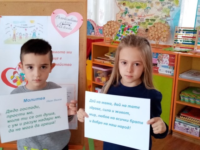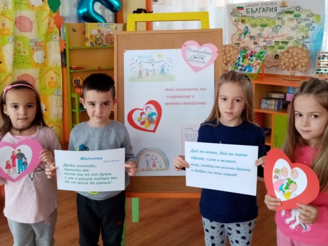 Децата с огромен интерес слушаха библейския разказ за празника Въведение Богородично, разказваха за важните и значими лични семейни празници. Останаха силно впечатлени от варианта на родословно дърво, което да попълнят с мама и тате у дома. С мили стихчета и вълнуващи песни изразиха голямата си обич към своите семейства, защото „човекът без семейство не може да живей!“. Най-голямото ми съкровище е моето семейство!