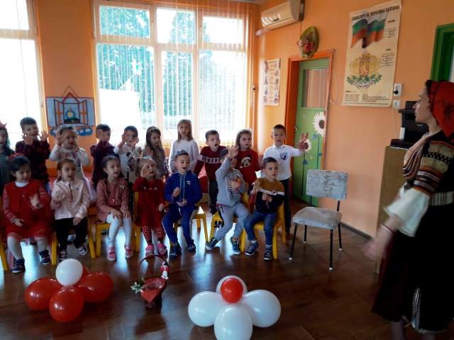 С много песни и стихотворения те я приветстваха за „добре дошла“. Тя ги поздрави и им подари пъстри мартенички, като им пожела да бъдат здрави и засмени.