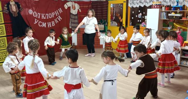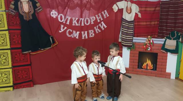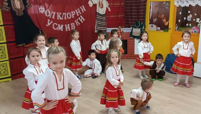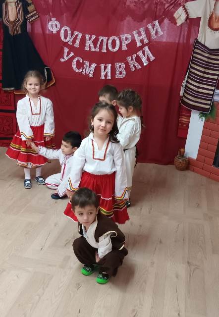 Децата облечени в красиви народни носии се включиха с огромен ентусиазъм във фолклорно надпяване и надиграване. Включването на фолклорните празници в живота на децата, събрали духовното богатство на нашия народ, позволява да се възприема българската култура, да се формира любов към всичко родно и желание то да бъде опазвано и обогатявано.