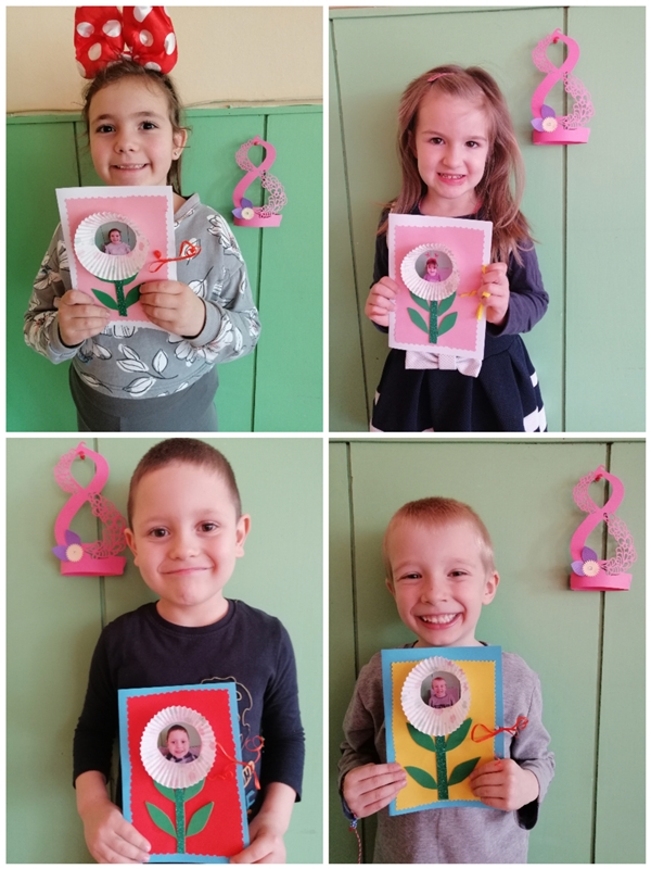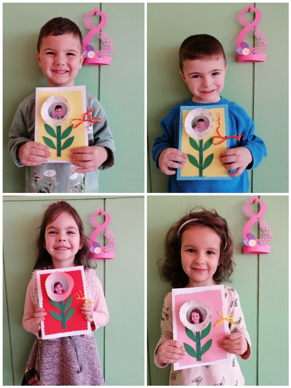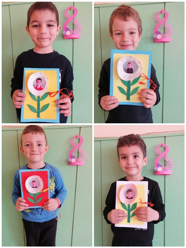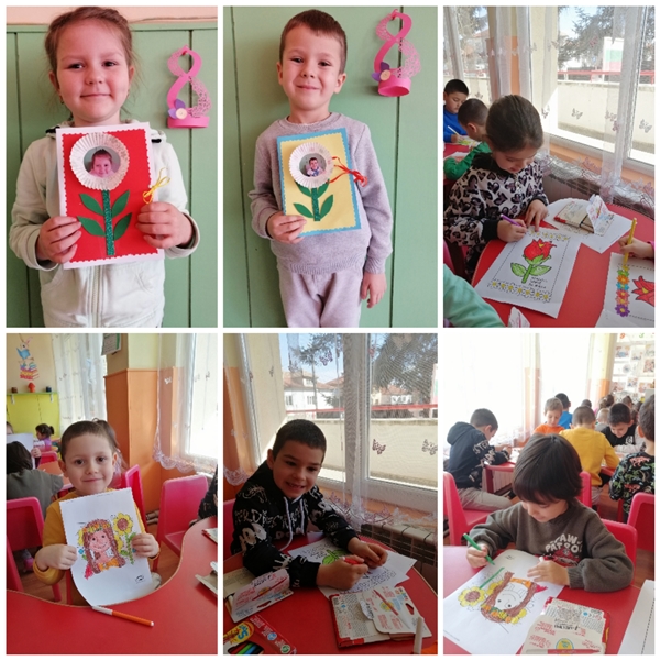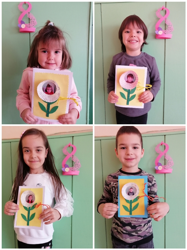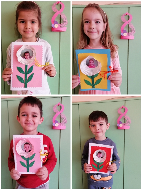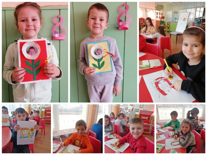 За 8-ми март, децата от група "Зайче" изработиха с голяма любов картички за своите майки. С много трепет и вълнение изработиха всеки един детайл от своя подарък..