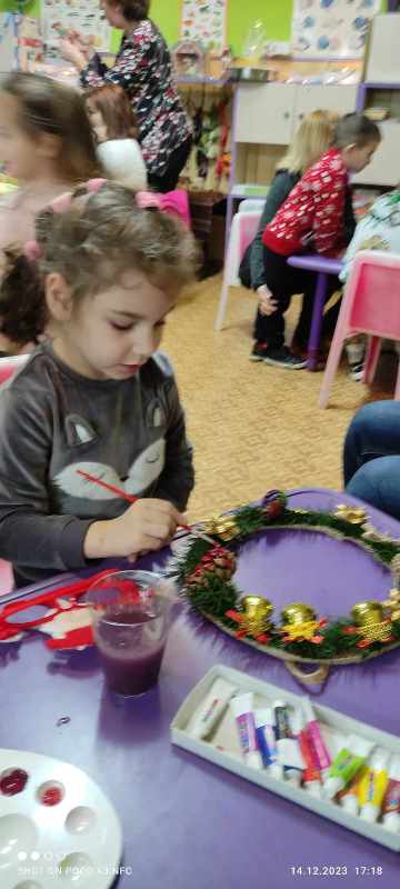 На 14 декември 2023 г. в група "Катеричка" се проведе Коледна работилница, в която се включиха деца, родители и учители. С много празнично настроение, песни и стихчета децата поздравиха гостите. След това, на фона на прекрасни коледни песни, всички заедно показаха творчески умения и талант - бяха изработени красиви коледни сувенири, картички, свещници, суровачки, коледни венци. Творческият дух и празничната атмосфера заредиха малки и големи с коледно настроение и усмивки.
