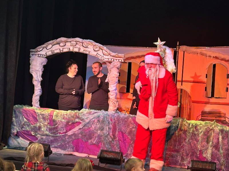 Днес, 20 декември 2023 година, децата от групите „Мечо“, „Катеричка“ и „Звънче“ посрещнаха Дядо Коледа в Общински Драматичен театър- Кюстендил. Посрещнаха ги артистите в празнично украсена зала и грейнала елха. Те представиха пиесата „Коледни бъркотии“. Децата с много интерес и усмивки изгледаха коледната пиеса. Накрая се появи дългочаканият белобрад старец. Дядо Коледа поздрави всички деца и седна край елхата с огромен чувал . Всяко дете получи подарък и се снима за спомен с него. Празникът продължи в детската градина с песни и стихотворения. Всяко дете получи мечтания подарък.