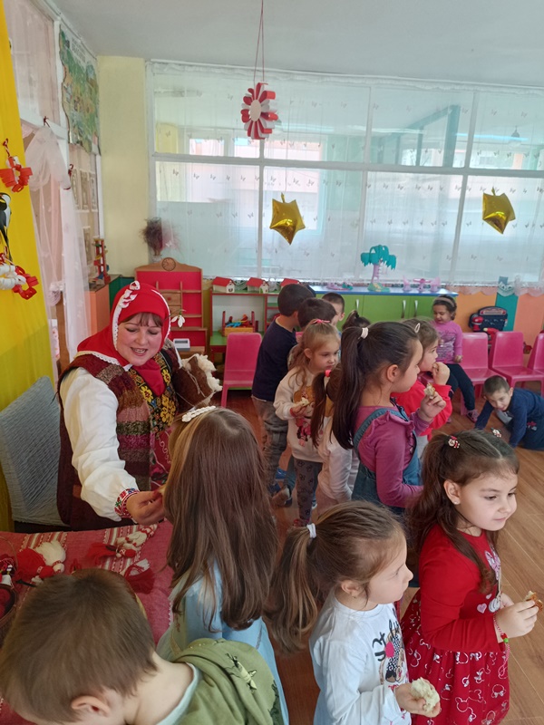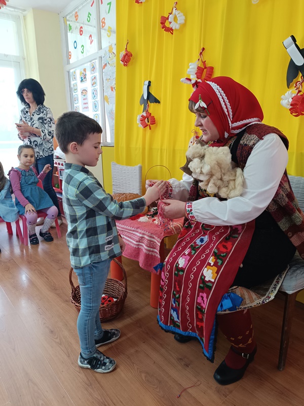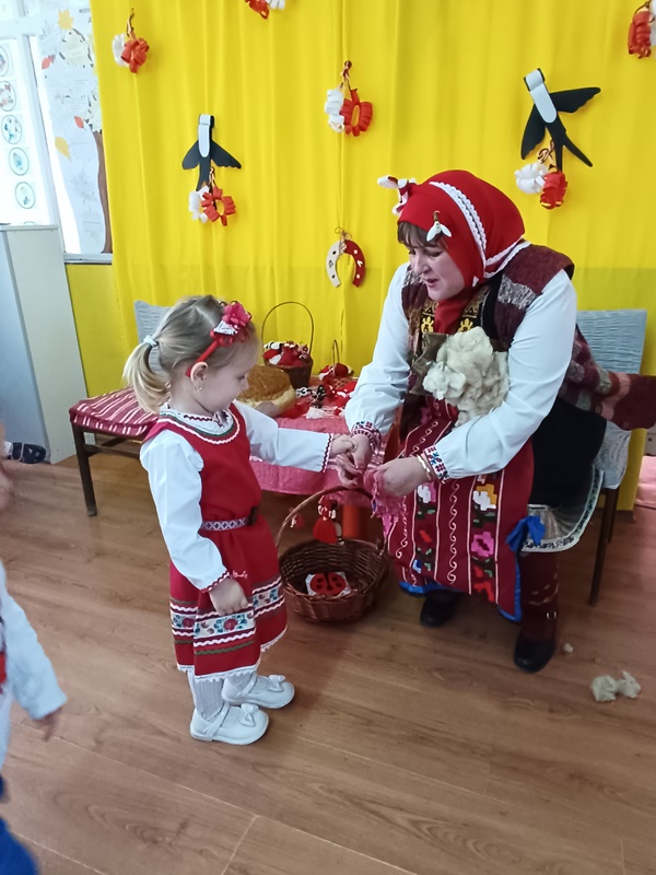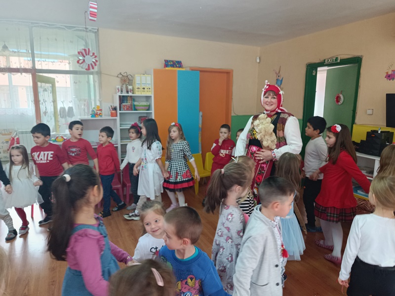 Баба Марта зарадва всички - от най- големи до на-мънички, като завърза мартенички на всяка ръчичка на малчуганите.