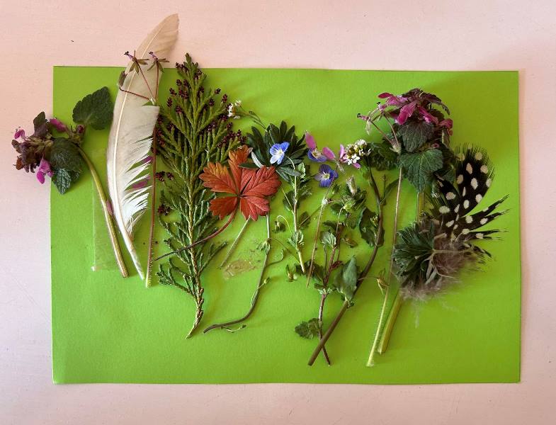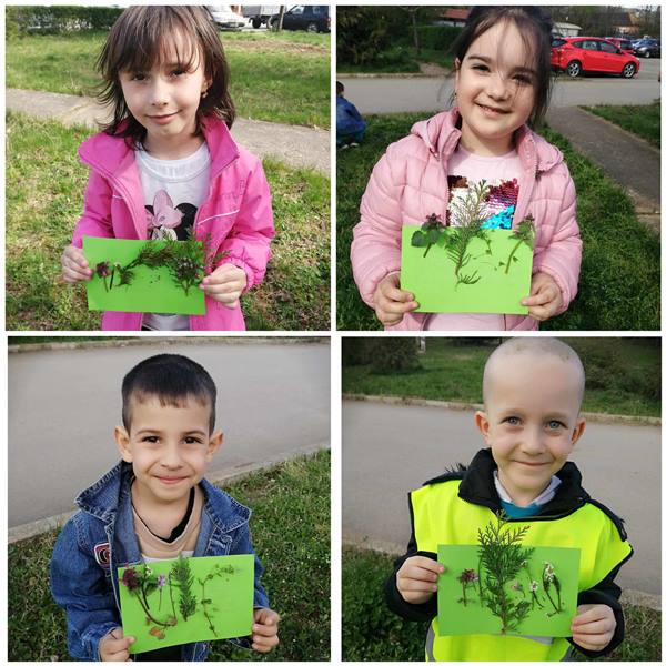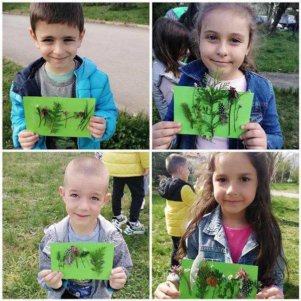 С богат картинен материал и игри на открито децата обогатиха знанията си за гората. Те изработиха интересни картички с природни материали, които сами намериха и откъснаха от двора на стопанството.