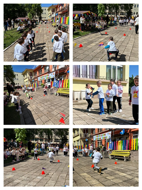 В състезателните игри се включиха не само децата, но и някои от родителите, което за малките участници беше много интересно. Всички игри и състезания, в които малчуганите показаха бързина, смелост и умения, бяха определени според тяхната възраст. Те премериха сили във веселите и увлекателни игри: „Веселите топки", "Да построим кула", "Бързата топка ", "Събери флагчетата", "Скачане с чували и стрелба".