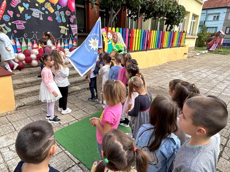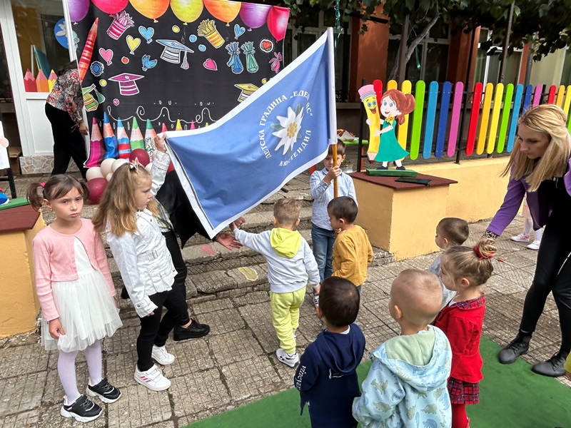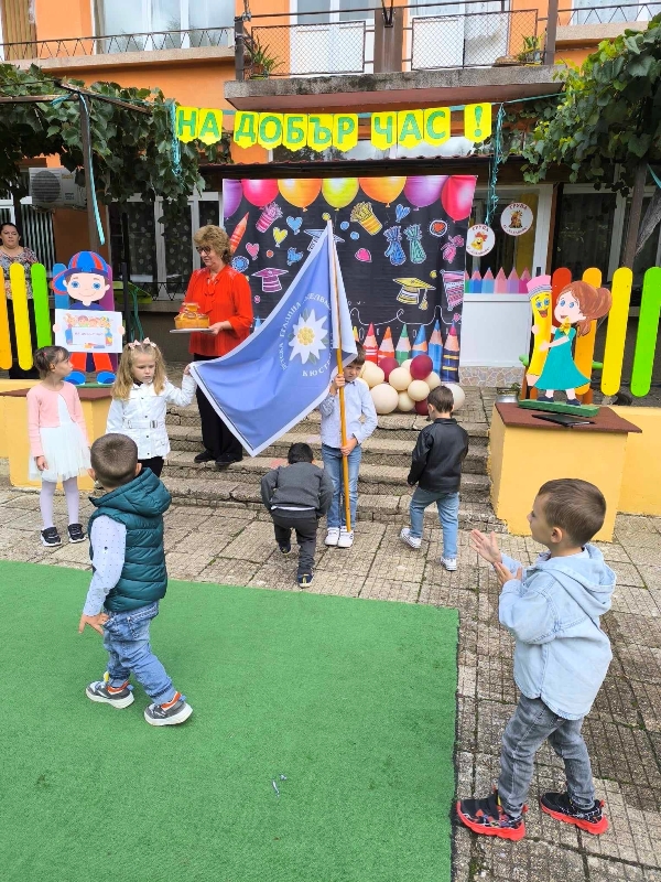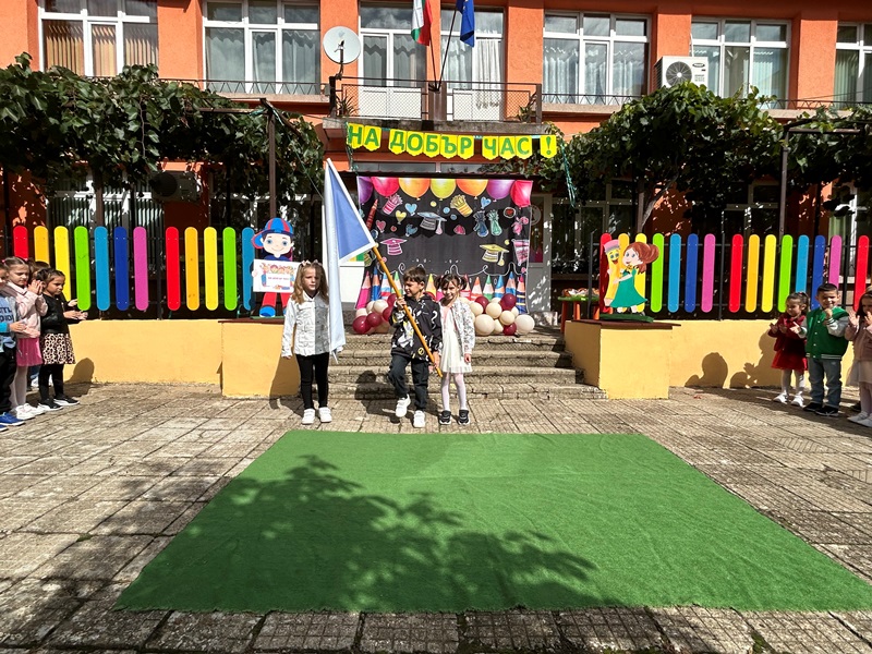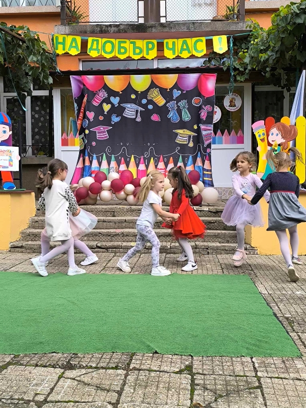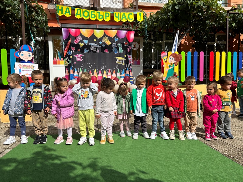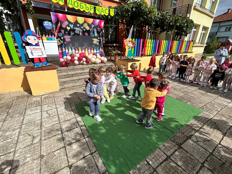 Децата от групите „Звънче“, „Катеричка“ , „Мечо“ и техните учители бяха подготвили вълнуващи стихове, песни и танци. Празничната програма се състоя в украсения двор на детската градина. Директорът М. Атанасова приветства децата, като отправи пожелания за здраве, успехи и спорна учебна година. Под звуците на химна на ДГ „Еделвайс“ лисна менче с вода и ги посрещна с питка и мед. В празнично украсените занимални децата ги очакваха изненади и подаръци.