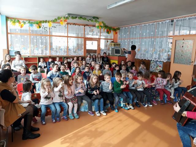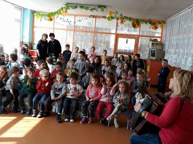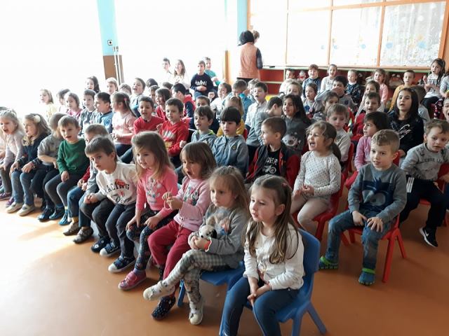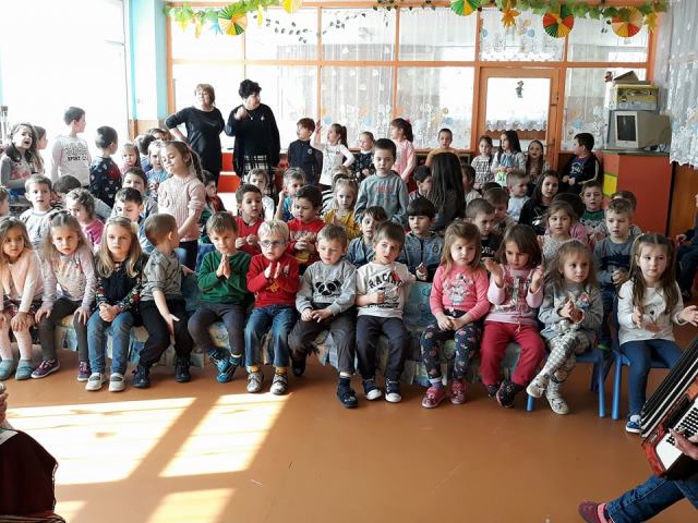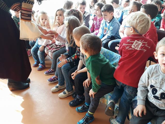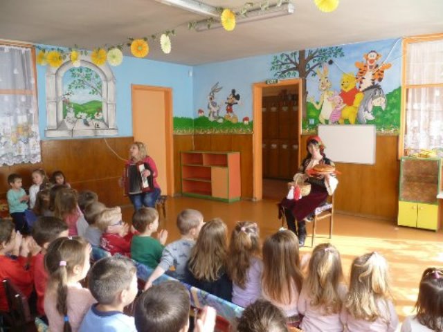 Песни, стихчета и танци поддържаха веселото настроение. Очарована от поздрава на малките малчугани от група " Ежко", Баба Марта закичи с мартенички детските ръчички с пожелание да са здрави, румени, засмени.
