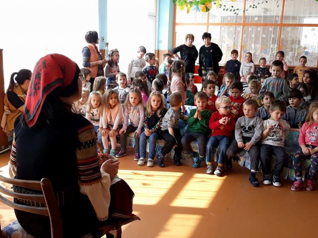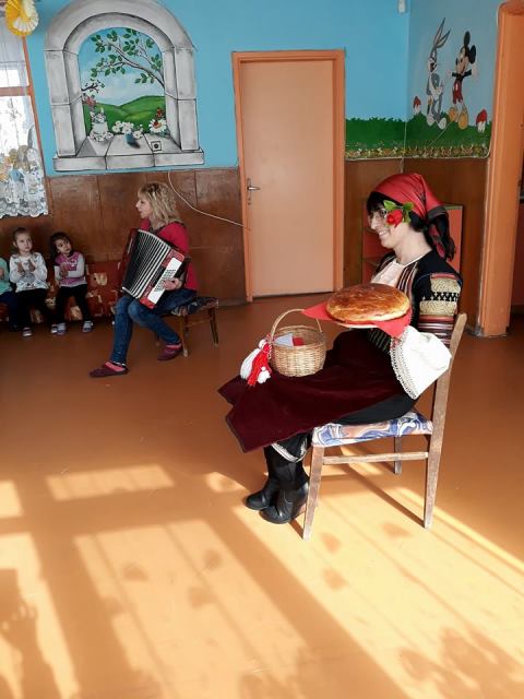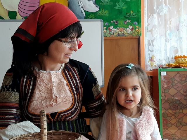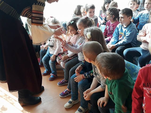 На първи март по традиция в ДГ“Еделвайс“ гр. Кюстендил бе посрещната Баба Марта, с питка и мед по стар български обичай, за да е сладка и добричка, да дарява здраве и късмет на децата.