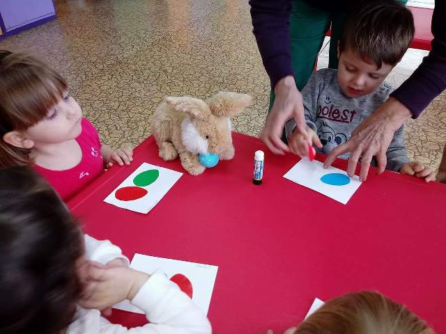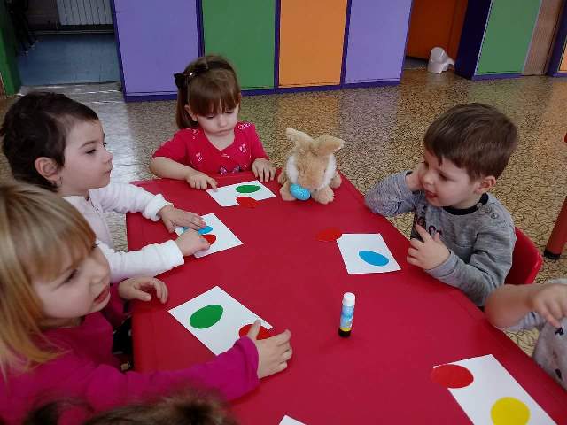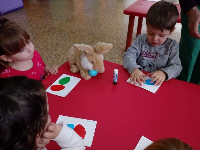 Децата от група "Звездичка" са в очакване на Великден. Макар и най- малките деца в детската градина, те се вълнуват и са в очакване на този празник. Всеки ден те пеят песнички и учат кратки стихчета за него. Направиха апликация на великденски яйца за да зарадват своите родители. Ето вижте: