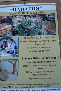 В средата на месец август - 15 август е “Успение на Пресвета Богородица” и Кюстендил отбелязва “Панагия” - Въздигане на хляба.