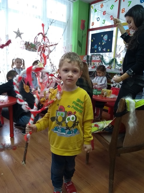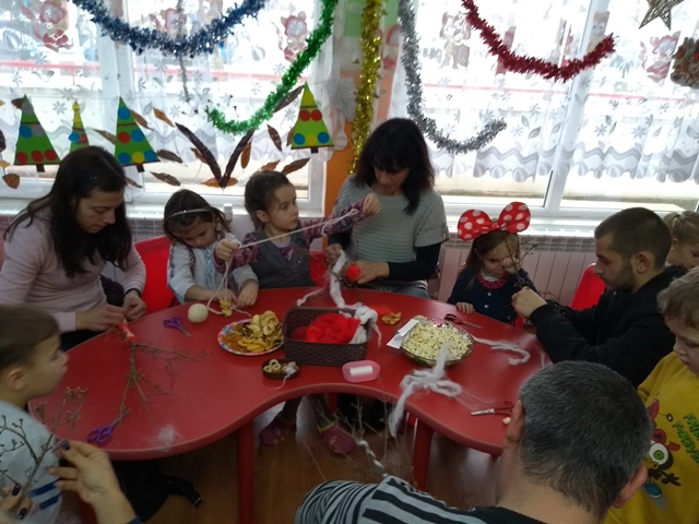 Днес, 18.12.2018 г. в група "Зайче" се проведе практикум с родителите на тема: "Зимна работилничка-изработване на сурвачки". Тя е включена в плана на методично обединение по изобразително изкуство.