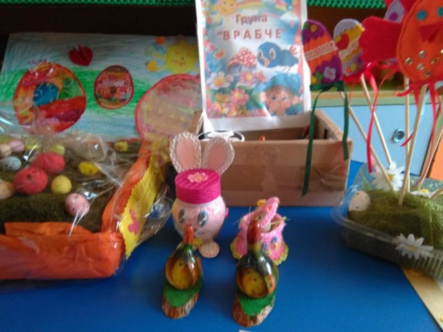 Празнично великденско настроение обхвана децата от група „Врабче” още от първите дни на месец април. Намерили вдъхновение от наближаващия най-голям християнски празник, децата рисуваха, апликираха, изработиха поставки за яйца, кошнички, зайчета, пиленца и още много изделия, с които да участват в организирания Великденски базар.