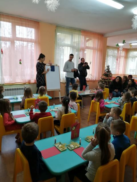 Малките "звънчета" показаха знания, умения и изработиха коледни картички с помощта на присъстващите родители.