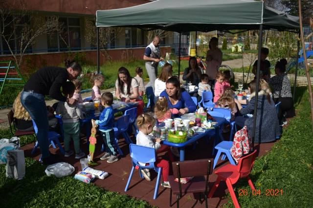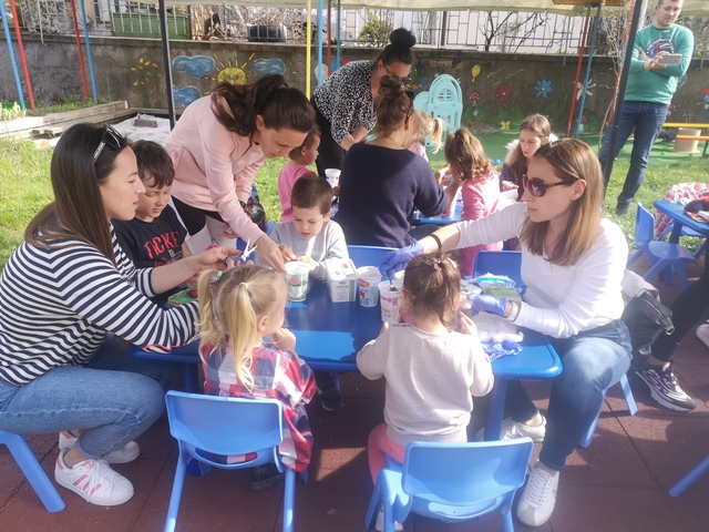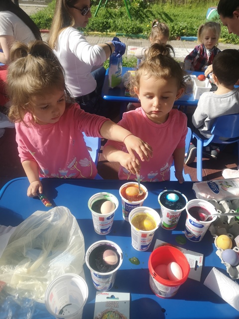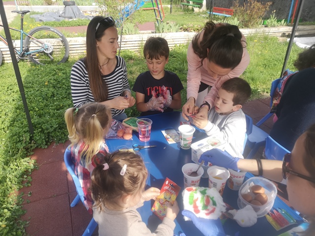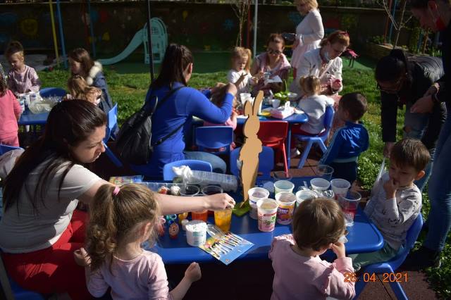 На 26 април 2021 година двора на нашата детска градина се превърна  в "място" за боядисване на великденски яйца. С цел заздравяване на емоционалната свързаност и хармония в отношенията на възрастните с децата, родителите от група "Щурче" заедно с учителите участваха в арт- терапия "Великденска работилница". Хубавото време навън, както и помощта на родителите спомогнаха бързо и красиво да се подготвят великденските яйца, а децата научиха за традициите и народните обичаи, свързани  с  празника.