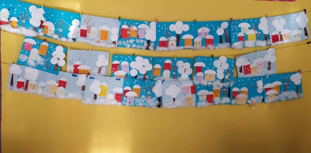 На 29.11.2019г в група ,, Катеричка " се проведе открита педагогическа ситуация по изобразително изкуство на тема ,, Зима". Чрез много артистичност, игри и богат илюстративен материал децата си припомниха прелестите на зимния сезон. След това чрез нетипични материали за апликация пресъздадоха тази красота в прекрасни зимни пейзажи.